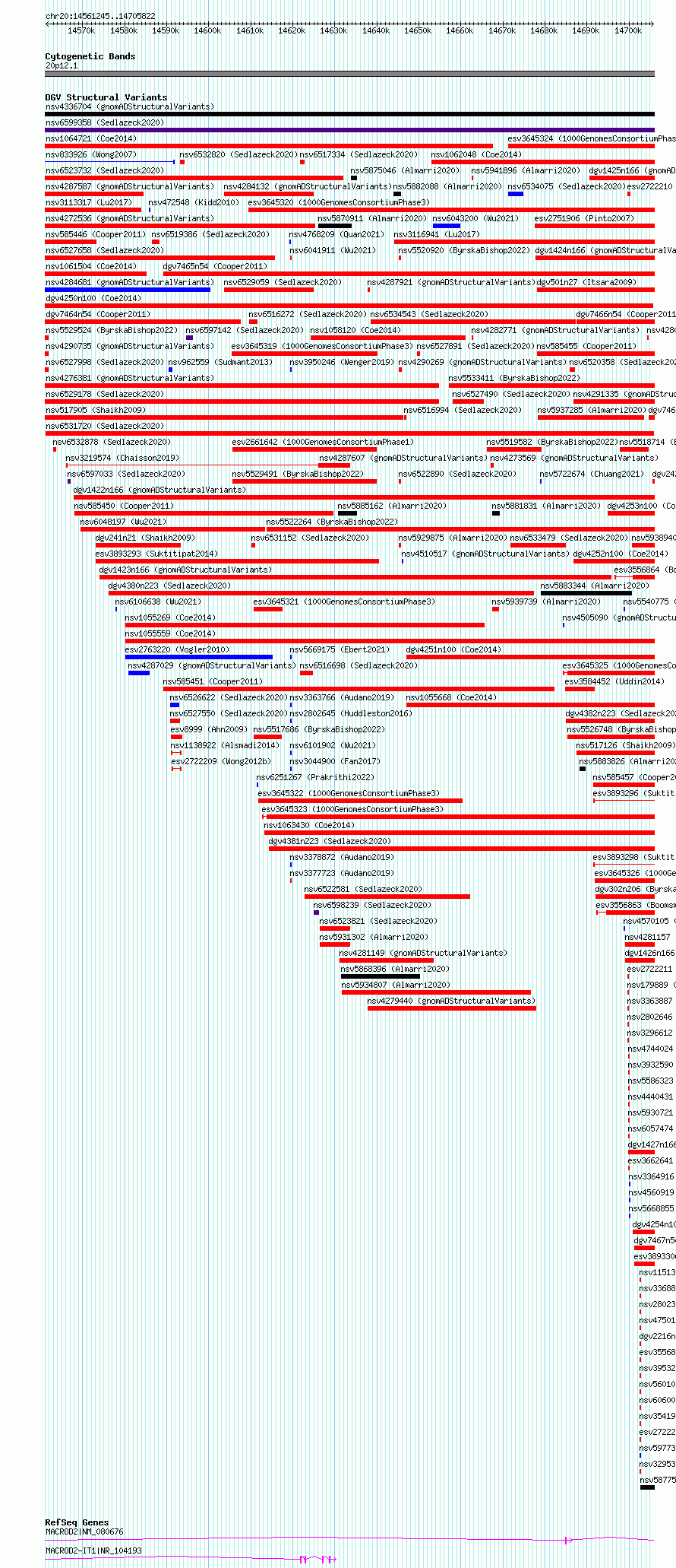 Variant DetailsVariant: nsv6531720| Internal ID | 20905081 | | Landmark | | | Location Information | | | Cytoband | 20p12.1 | | Allele length | | Assembly | Allele length | | hg38 | 144578 | | hg19 | 144578 |