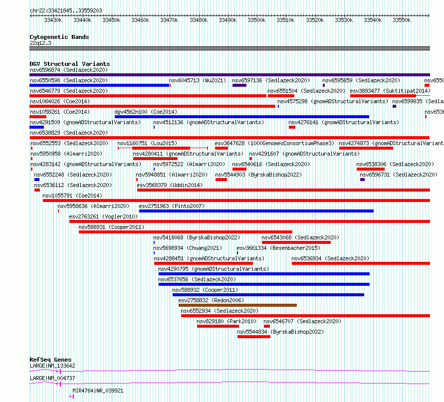 Variant DetailsVariant: nsv6538829| Internal ID | 20912143 | | Landmark | | | Location Information | | | Cytoband | 22q12.3 | | Allele length | | Assembly | Allele length | | hg38 | 137359 | | hg19 | 137359 |