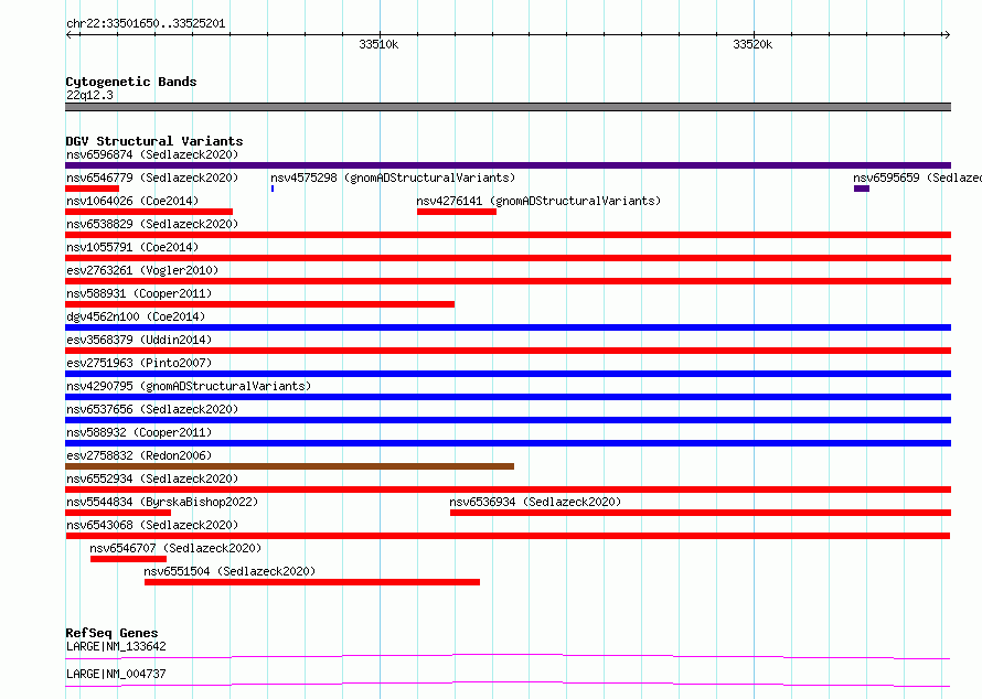 Variant DetailsVariant: nsv6543068| Internal ID | 20916319 | | Landmark | | | Location Information | | | Cytoband | 22q12.3 | | Allele length | | Assembly | Allele length | | hg38 | 23552 | | hg19 | 23552 |