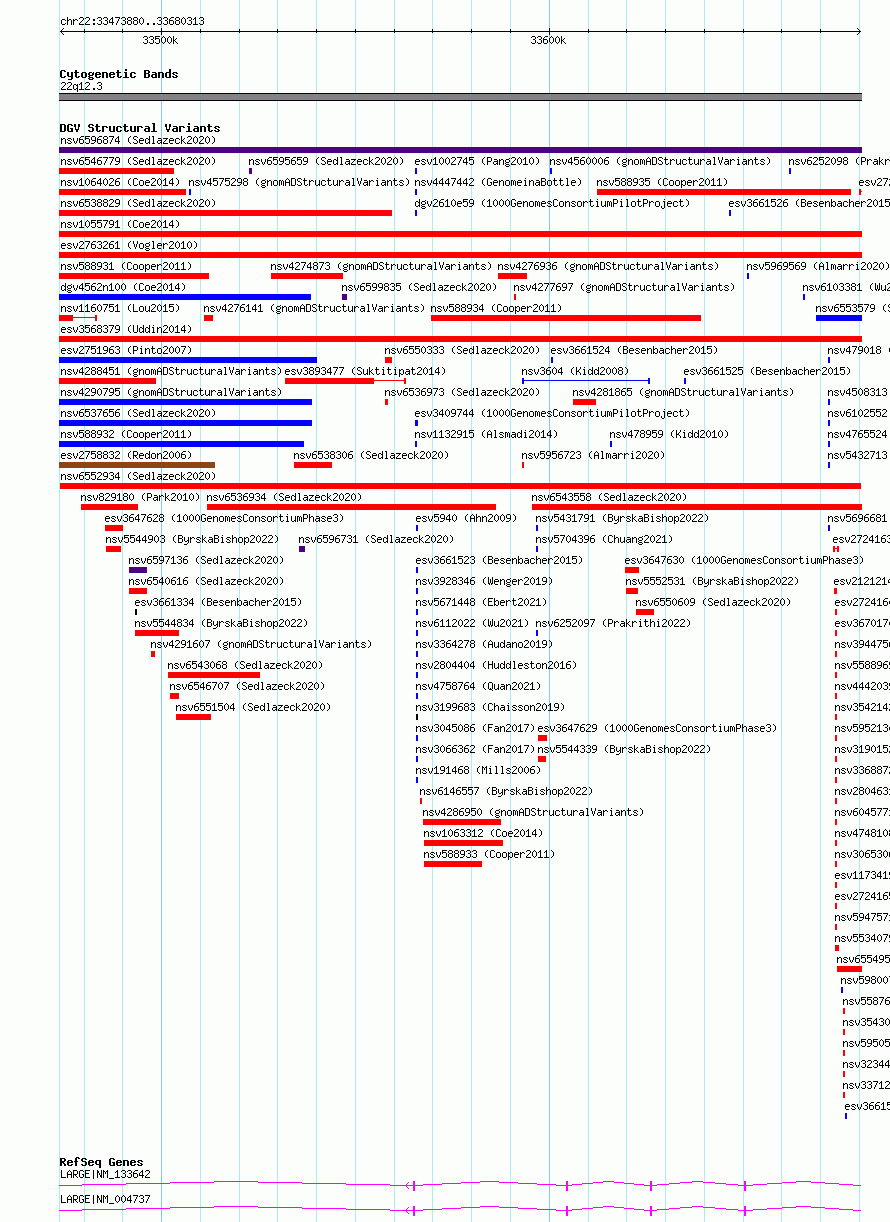 Variant DetailsVariant: nsv6552934| Internal ID | 20926052 | | Landmark | | | Location Information | | | Cytoband | 22q12.3 | | Allele length | | Assembly | Allele length | | hg38 | 206434 | | hg19 | 206434 |