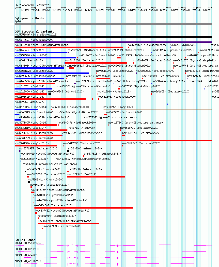 Variant DetailsVariant: nsv6601799| Internal ID | 20974870 | | Landmark | | | Location Information | | | Cytoband | 7p14.1 | | Allele length | | Assembly | Allele length | | hg38 | 183581 | | hg19 | 183581 |
