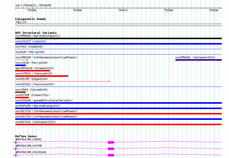 Variant DetailsVariant: nsv6607142| Internal ID | 20980213 | | Landmark | | | Location Information | | | Cytoband | 7q11.23 | | Allele length | | Assembly | Allele length | | hg38 | 4523 | | hg19 | 4524 |