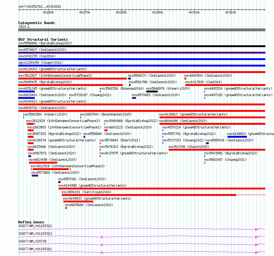 Variant DetailsVariant: nsv6609716| Internal ID | 20982787 | | Landmark | | | Location Information | | | Cytoband | 7p14.1 | | Allele length | | Assembly | Allele length | | hg38 | 67500 | | hg19 | 67500 |