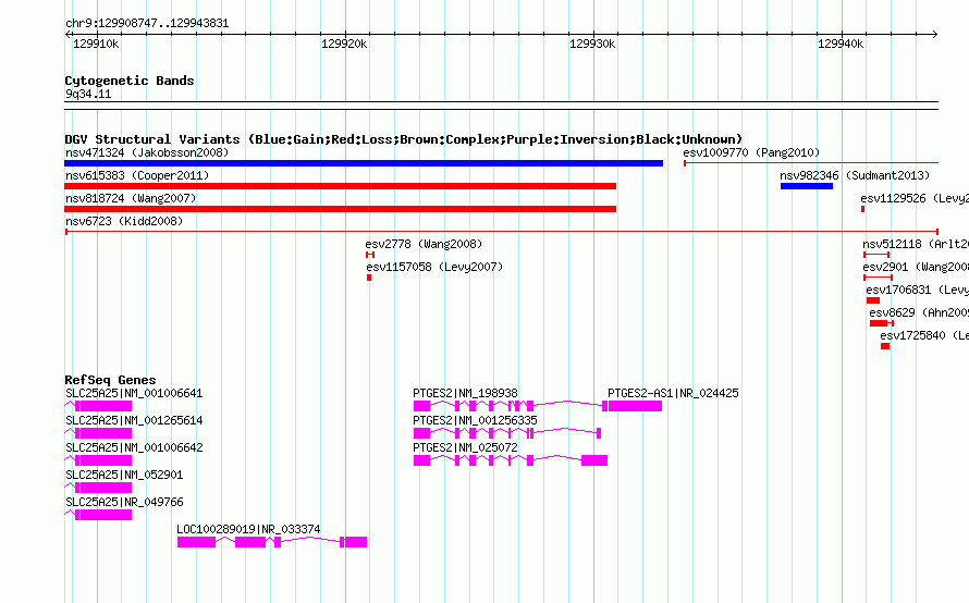 | Known Genes | LOC100289019, PTGES2, PTGES2-AS1, SLC25A25 |