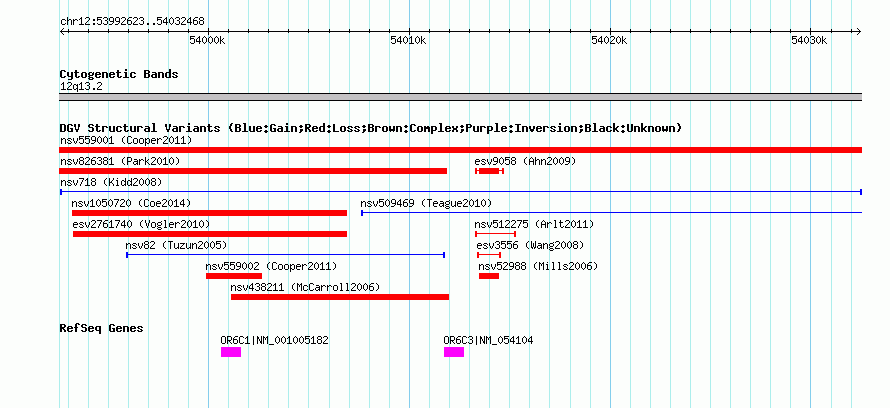 Variant DetailsVariant: nsv718| Internal ID | 15205477 | | Landmark | | | Location Information | | | Cytoband | 12q13.2 | | Allele length | | Assembly | Allele length | | hg38 | 8498 | | hg19 | 8498 | | hg18 | 8498 | | hg17 | 8498 |