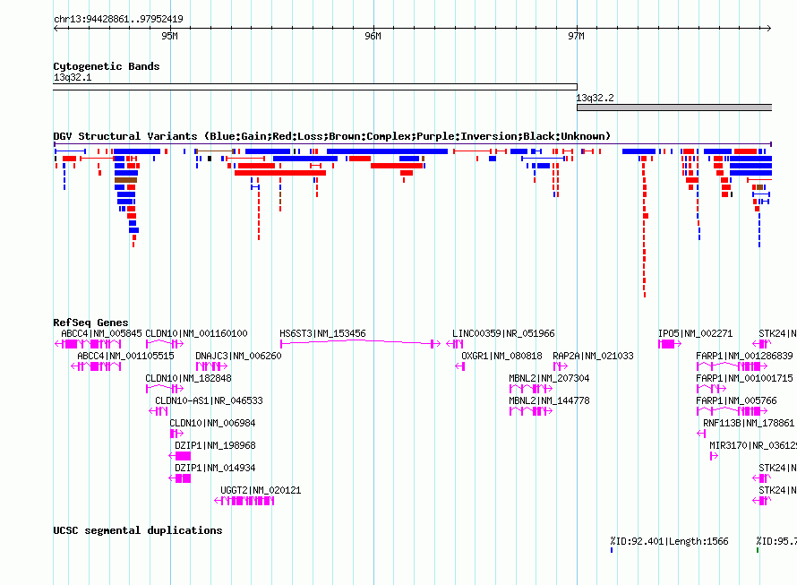 Variant DetailsVariant: nsv7246| Internal ID | 15205550 | | Landmark | | | Location Information | | | Cytoband | 13q32.1 | | Allele length | | Assembly | Allele length | | hg38 | 3523559 | | hg19 | 3523559 | | hg18 | 3523559 | | hg17 | 3523559 |