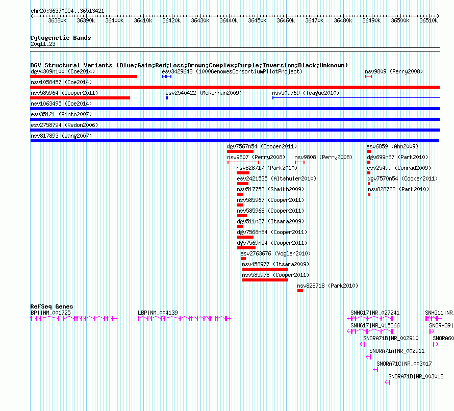 Variant DetailsVariant: nsv817893 | Internal ID | 16060048 | | Landmark | | | Location Information | | | Cytoband | 20q11.23 | | Allele length | | Assembly | Allele length | | hg38 | 142627 | | hg19 | 142868 | | hg18 | 142868 | | hg17 | 142868 |