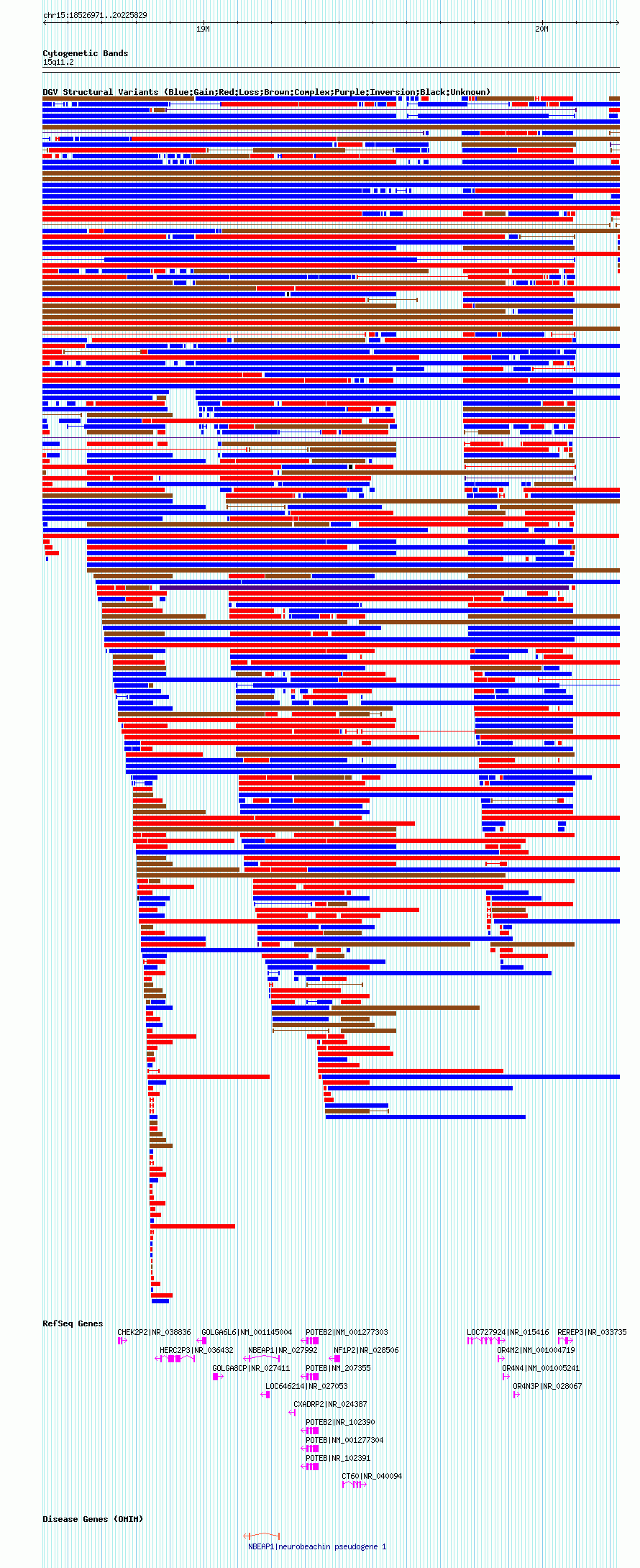 Variant DetailsVariant: nsv821678 | Internal ID | 16410739 | | Landmark | | | Location Information | | | Cytoband | 15q11.1 | | Allele length | | Assembly | Allele length | | hg38 | 2246539 | | hg19 | 2407509 | | hg18 | 1698859 | | hg17 | 1698859 |