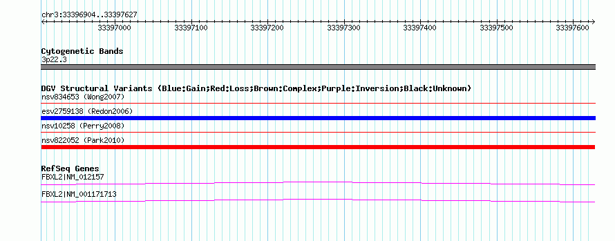 Variant DetailsVariant: nsv822052 | Internal ID | 16431212 | | Landmark | | | Location Information | | | Cytoband | 3p22.3 | | Allele length | | Assembly | Allele length | | hg38 | 724 | | hg19 | 724 | | hg18 | 724 |