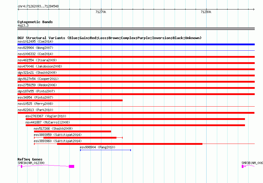 Variant DetailsVariant: nsv822613 | Internal ID | 16431773 | | Landmark | | | Location Information | | | Cytoband | 4q13.3 | | Allele length | | Assembly | Allele length | | hg38 | 22456 | | hg19 | 22456 | | hg18 | 22456 |