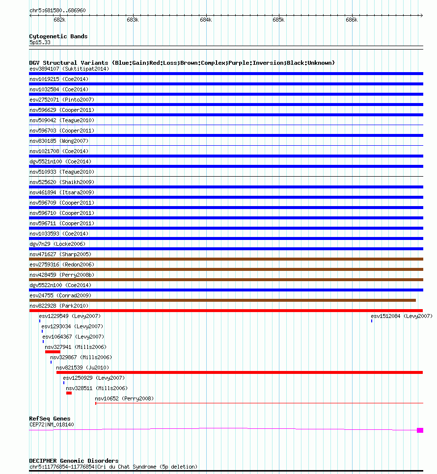 Variant DetailsVariant: nsv822928 | Internal ID | 16432088 | | Landmark | | | Location Information | | | Cytoband | 5p15.33 | | Allele length | | Assembly | Allele length | | hg38 | 5381 | | hg19 | 5381 | | hg18 | 5381 |