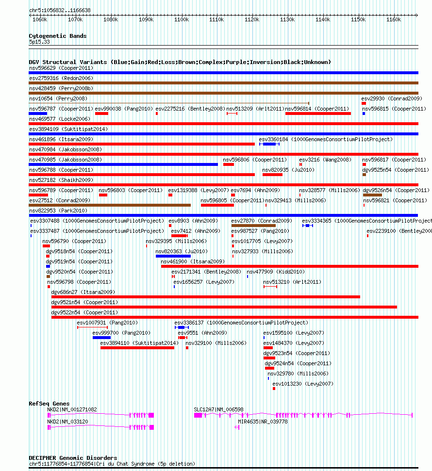 Variant DetailsVariant: nsv822953 | Internal ID | 16432113 | | Landmark | | | Location Information | | | Cytoband | 5p15.33 | | Allele length | | Assembly | Allele length | | hg38 | 109807 | | hg19 | 109807 | | hg18 | 109807 |