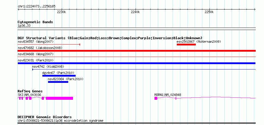 Variant DetailsVariant: nsv823031 | Internal ID | 16432191 | | Landmark | | | Location Information | | | Cytoband | 1p36.33 | | Allele length | | Assembly | Allele length | | hg38 | 32093 | | hg19 | 32093 | | hg18 | 32093 |