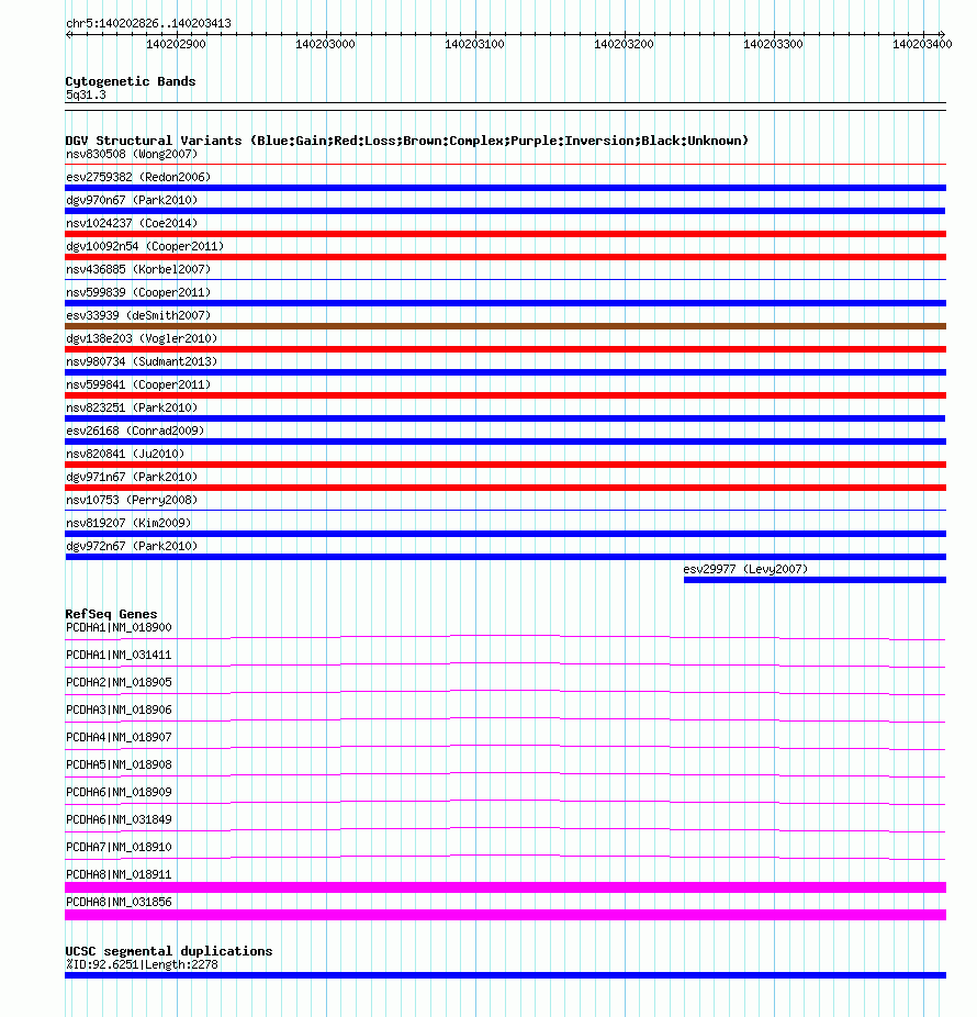 Variant DetailsVariant: nsv823257 | Internal ID | 16085731 | | Landmark | | | Location Information | | | Cytoband | 5q31.3 | | Allele length | | Assembly | Allele length | | hg38 | 588 | | hg19 | 588 | | hg18 | 588 |