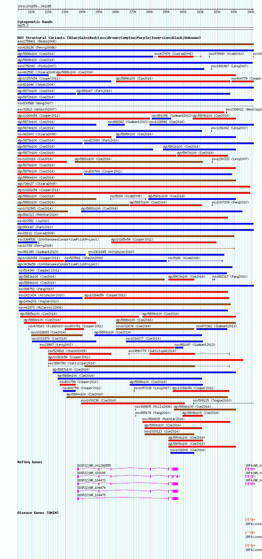 Variant DetailsVariant: nsv823384 | Internal ID | 16085858 | | Landmark | | | Location Information | | | Cytoband | 6p25.3 | | Allele length | | Assembly | Allele length | | hg38 | 139627 | | hg19 | 139627 | | hg18 | 139627 |