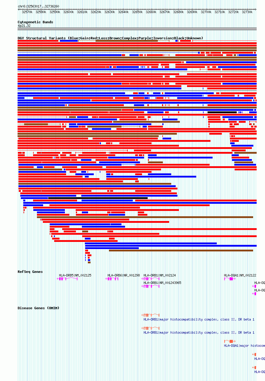 Variant DetailsVariant: nsv823529 | Internal ID | 16432689 | | Landmark | | | Location Information | | | Cytoband | 6p21.32 | | Allele length | | Assembly | Allele length | | hg38 | 173244 | | hg19 | 173244 | | hg18 | 173244 |