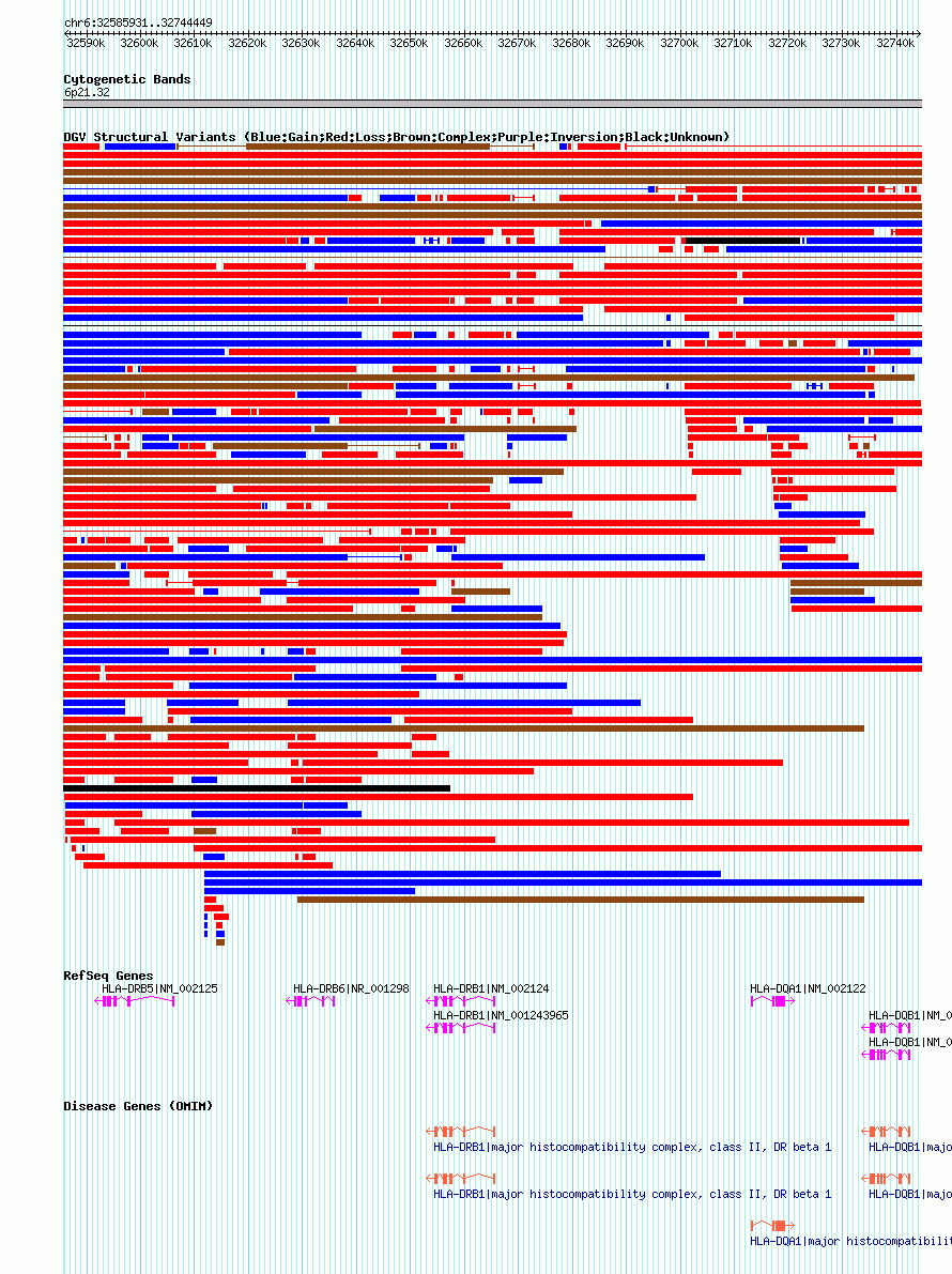 Variant DetailsVariant: nsv823538 | Internal ID | 16432698 | | Landmark | | | Location Information | | | Cytoband | 6p21.32 | | Allele length | | Assembly | Allele length | | hg38 | 158519 | | hg19 | 158519 | | hg18 | 158519 |