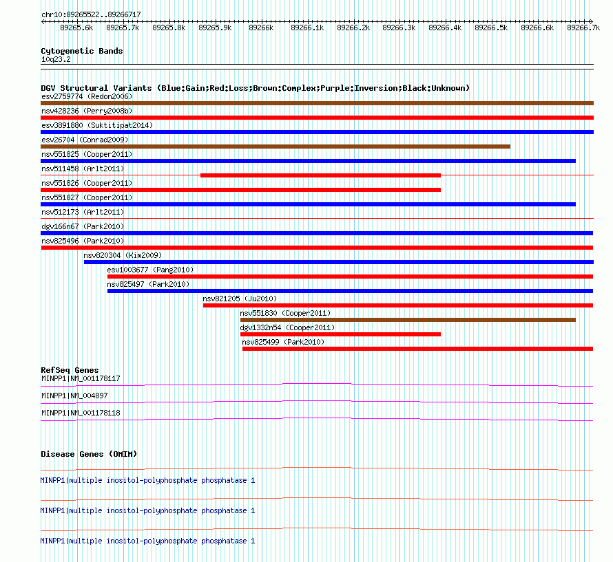 Variant DetailsVariant: nsv825496 | Internal ID | 16434656 | | Landmark | | | Location Information | | | Cytoband | 10q23.2 | | Allele length | | Assembly | Allele length | | hg38 | 1196 | | hg19 | 1196 | | hg18 | 1196 |