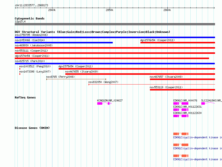 Variant DetailsVariant: nsv825715 | Internal ID | 16088189 | | Landmark | | | Location Information | | | Cytoband | 11p15.4 | | Allele length | | Assembly | Allele length | | hg38 | 34597 | | hg19 | 34597 | | hg18 | 34597 |