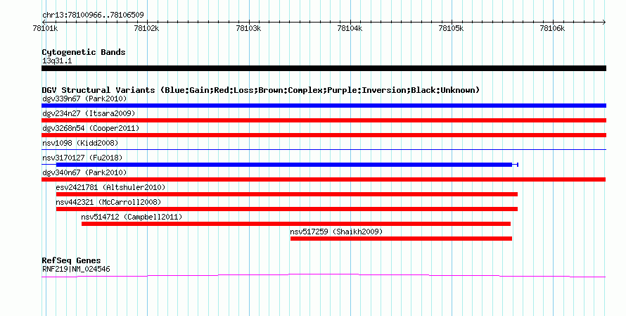 Variant DetailsVariant: nsv826728 | Internal ID | 16435888 | | Landmark | | | Location Information | | | Cytoband | 13q31.1 | | Allele length | | Assembly | Allele length | | hg38 | 5544 | | hg19 | 5544 | | hg18 | 5544 |