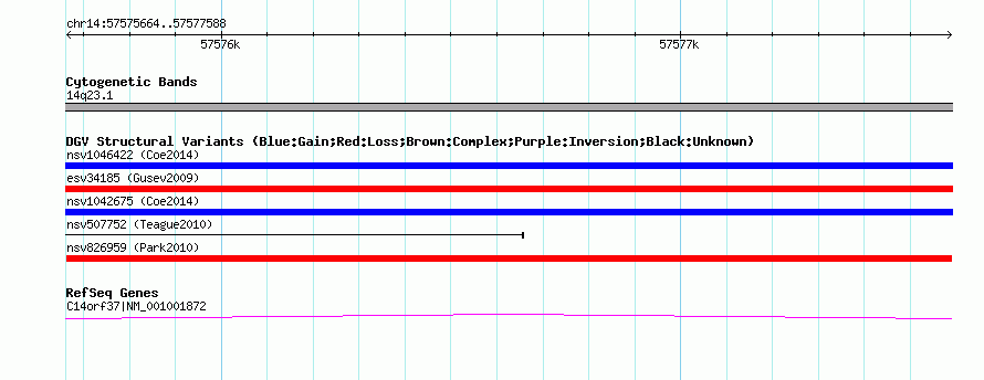 Innerchr14:57575664..57577588hg18UCSC Ensembl