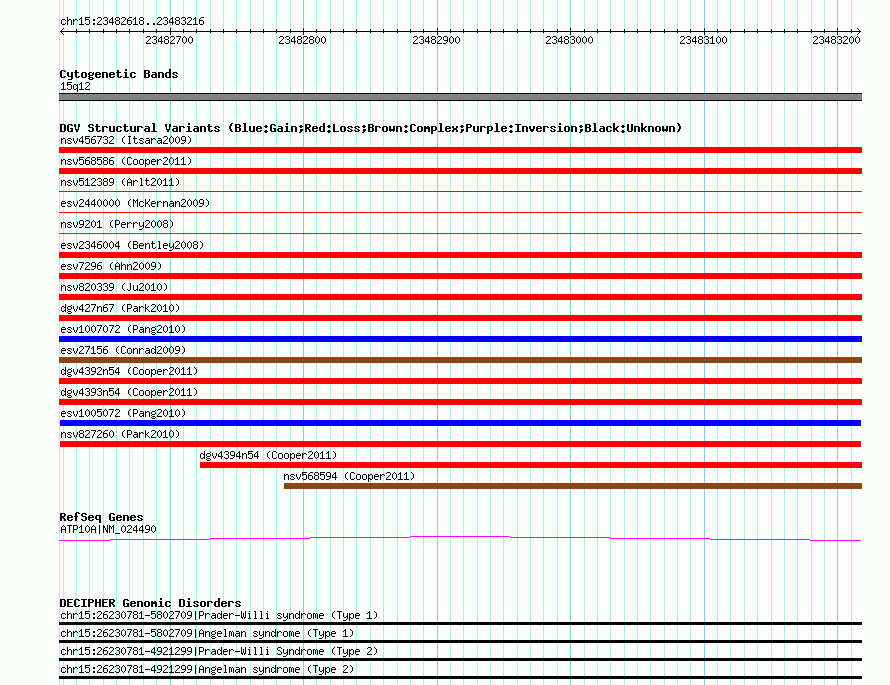 Variant DetailsVariant: nsv827260 | Internal ID | 16436420 | | Landmark | | | Location Information | | | Cytoband | 15q12 | | Allele length | | Assembly | Allele length | | hg38 | 599 | | hg19 | 599 | | hg18 | 599 |