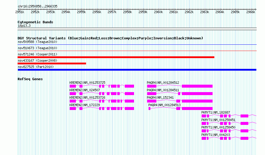 Variant DetailsVariant: nsv827525 | Internal ID | 16436685 | | Landmark | | | Location Information | | | Cytoband | 16p13.3 | | Allele length | | Assembly | Allele length | | hg38 | 15478 | | hg19 | 15478 | | hg18 | 15478 |