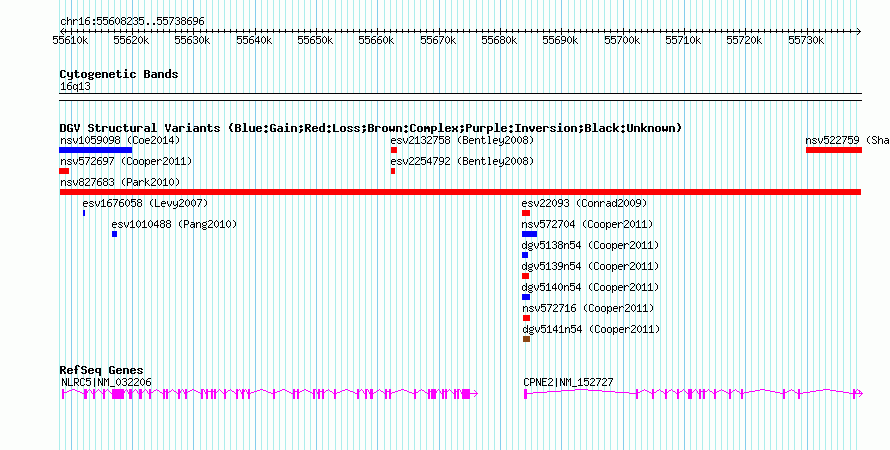 Variant DetailsVariant: nsv827683 | Internal ID | 16436843 | | Landmark | | | Location Information | | | Cytoband | 16q13 | | Allele length | | Assembly | Allele length | | hg38 | 130462 | | hg19 | 130462 | | hg18 | 130462 |