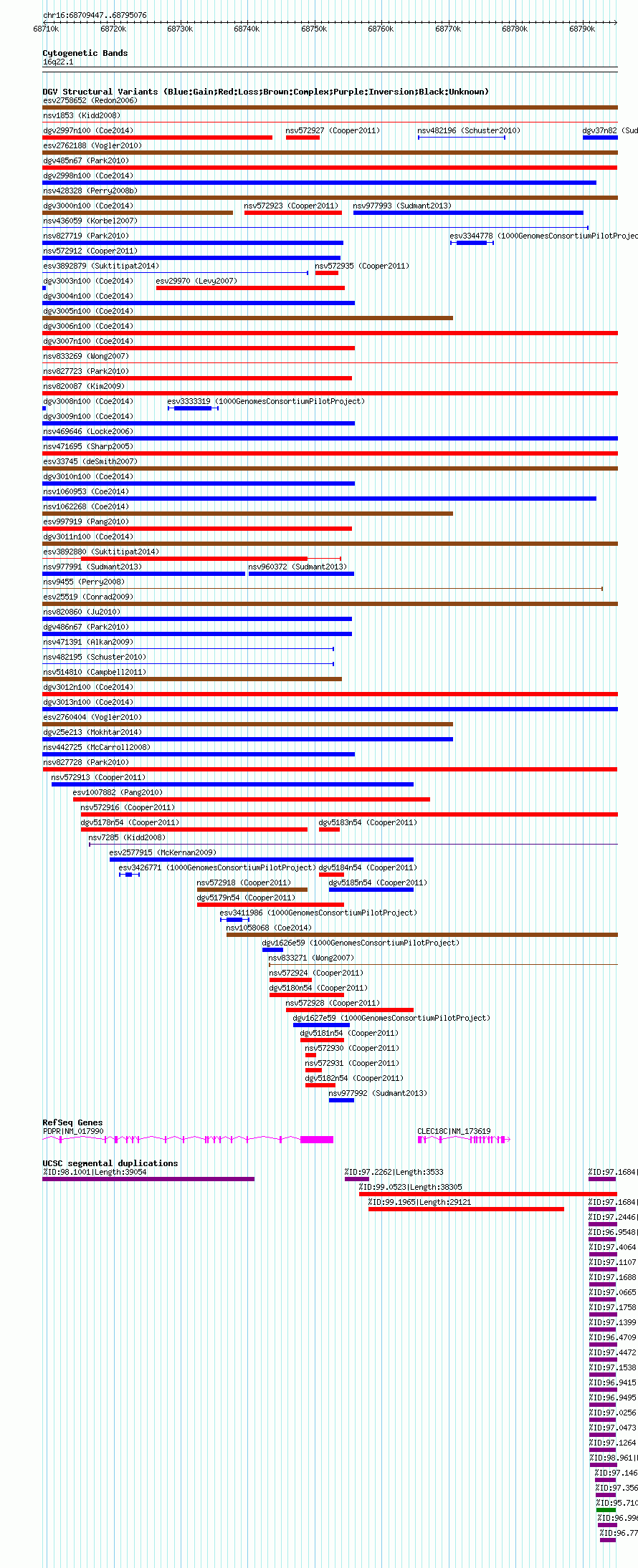 Variant DetailsVariant: nsv827728 Internal ID | 16090202 | Landmark | | Location Information | | Cytoband | 16q22.1 | Allele length | Assembly | Allele length | hg38 | 85630 | hg19 | 85630 | hg18 | 85630 |