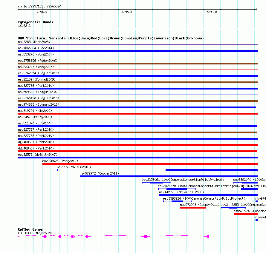 Innerchr16:72937152..72965320hg18UCSC Ensembl