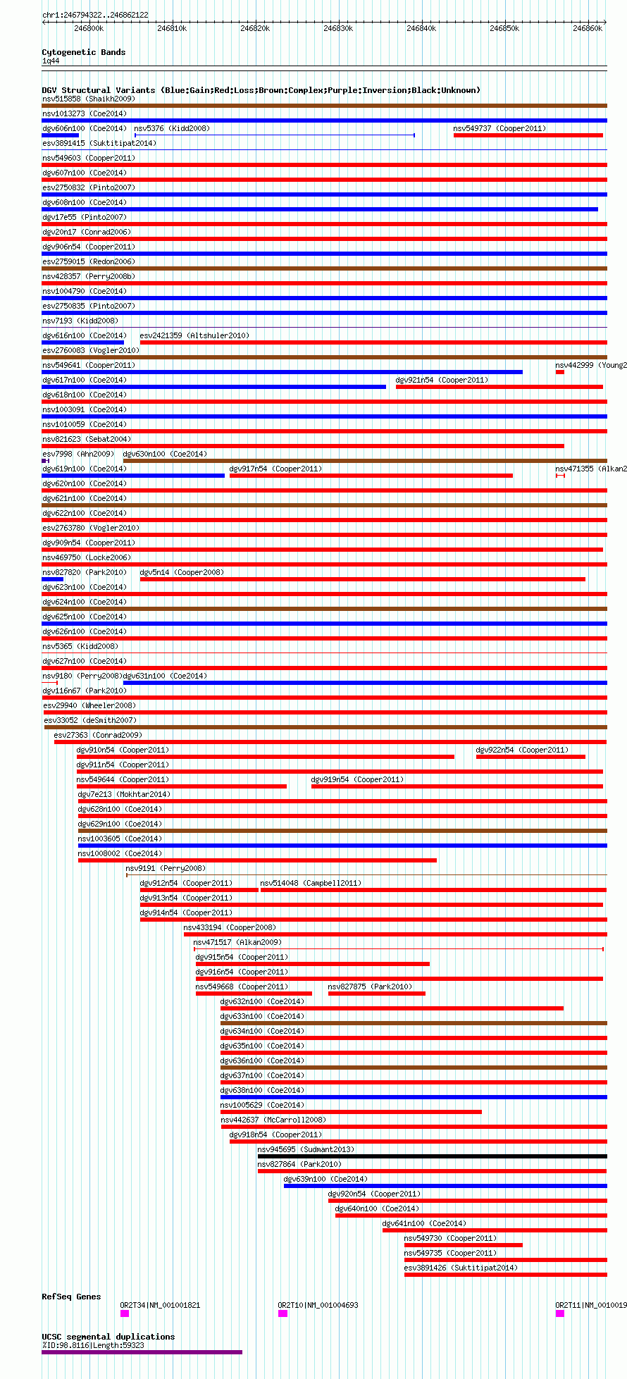 Variant DetailsVariant: nsv827831 | Internal ID | 16090305 | | Landmark | | | Location Information | | | Cytoband | 1q44 | | Allele length | | Assembly | Allele length | | hg38 | 67801 | | hg19 | 67801 | | hg18 | 67801 |