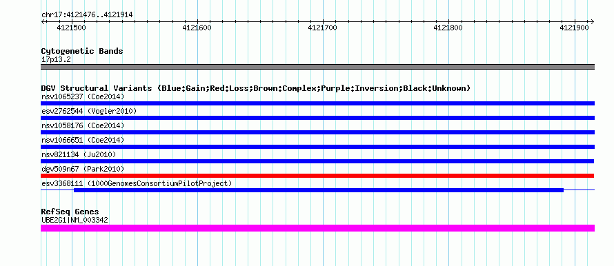 Variant DetailsVariant: nsv827867 | Internal ID | 16437027 | | Landmark | | | Location Information | | | Cytoband | 17p13.2 | | Allele length | | Assembly | Allele length | | hg38 | 439 | | hg19 | 439 | | hg18 | 439 |