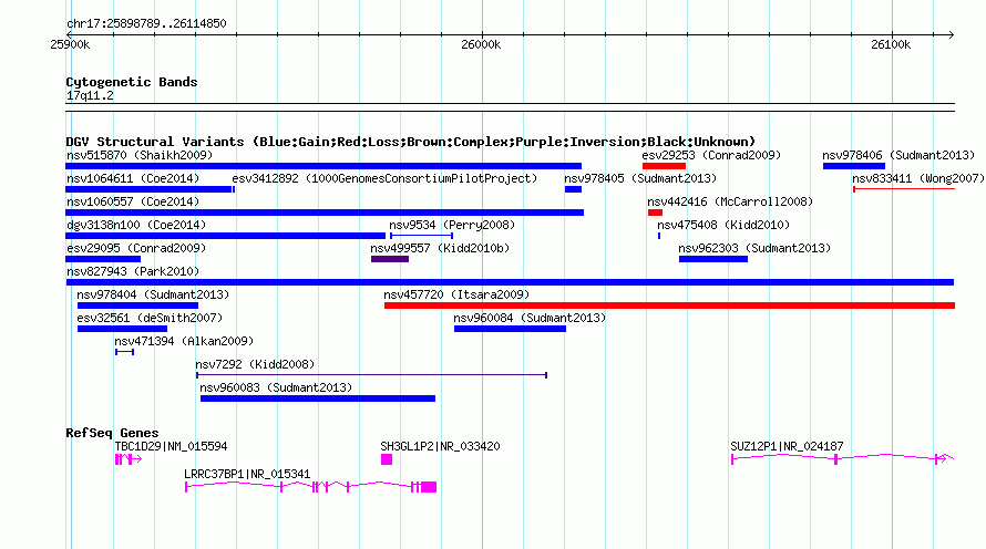 Variant DetailsVariant: nsv827943 | Internal ID | 16437103 | | Landmark | | | Location Information | | | Cytoband | 17q11.2 | | Allele length | | Assembly | Allele length | | hg38 | 216062 | | hg19 | 216062 | | hg18 | 216062 |