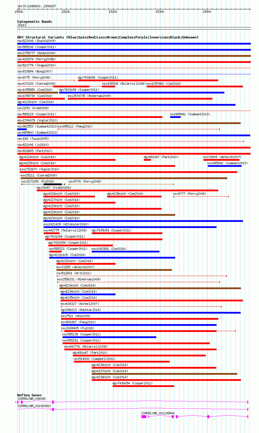 Variant DetailsVariant: nsv828665 | Internal ID | 16437825 | | Landmark | | | Location Information | | | Cytoband | 20p13 | | Allele length | | Assembly | Allele length | | hg38 | 49515 | | hg19 | 49515 | | hg18 | 49515 |