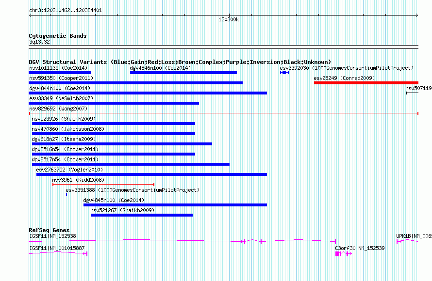 Variant DetailsVariant: nsv829692 | Internal ID | 16453561 | | Landmark | | | Location Information | | | Cytoband | 3q13.32 | | Allele length | | Assembly | Allele length | | hg38 | 173940 | | hg19 | 173940 | | hg18 | 173940 | | hg17 | 173940 |