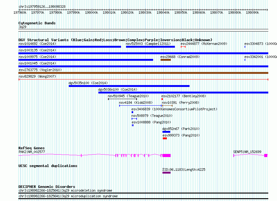 Variant DetailsVariant: nsv829829 | Internal ID | 16107012 | | Landmark | | | Location Information | | | Cytoband | 3q29 | | Allele length | | Assembly | Allele length | | hg38 | 139203 | | hg19 | 139203 | | hg18 | 139203 | | hg17 | 139203 |