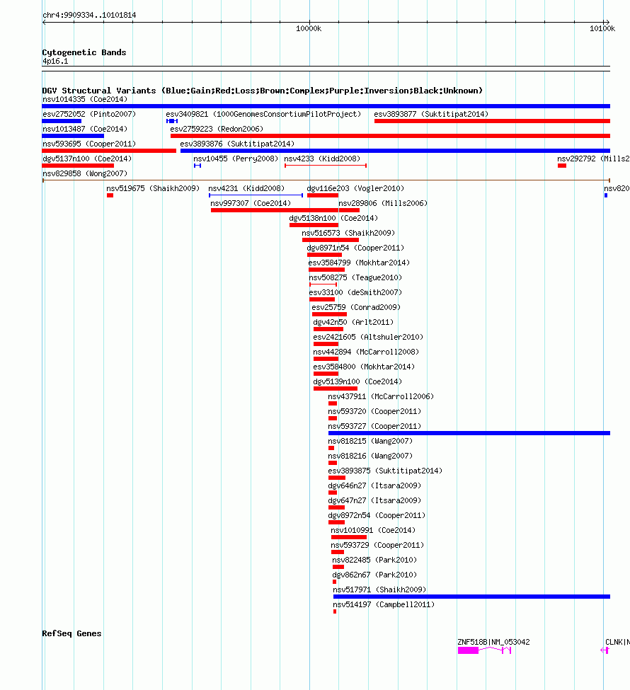 Variant DetailsVariant: nsv829858 Internal ID | 16107041 | Landmark | | Location Information | | Cytoband | 4p16.1 | Allele length | Assembly | Allele length | hg38 | 192481 | hg19 | 192481 | hg18 | 192481 | hg17 | 192481 |