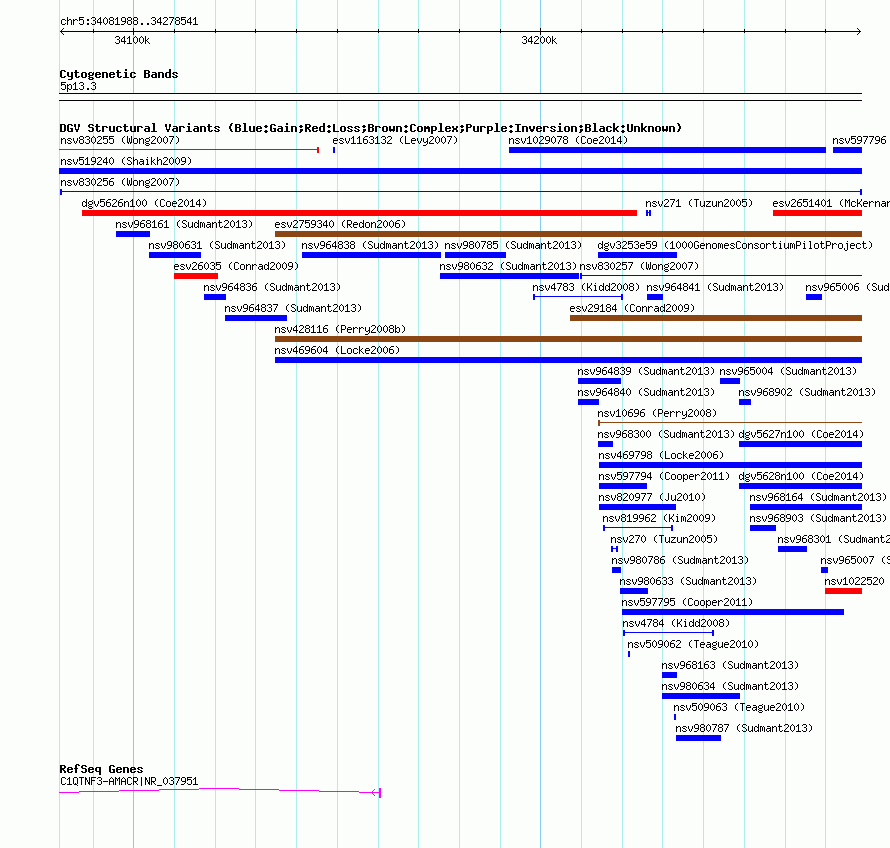 Variant DetailsVariant: nsv830256 | Internal ID | 16454125 | | Landmark | | | Location Information | | | Cytoband | 5p13.2 | | Allele length | | Assembly | Allele length | | hg38 | 196554 | | hg19 | 196554 | | hg18 | 196554 | | hg17 | 196554 |