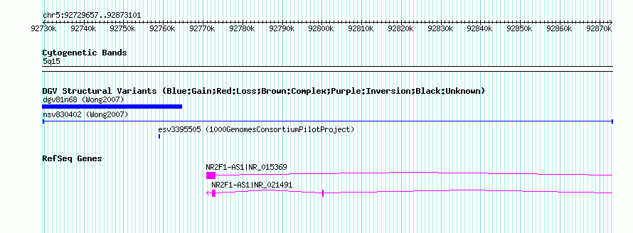 Variant DetailsVariant: nsv830402 | Internal ID | 16454271 | | Landmark | | | Location Information | | | Cytoband | 5q15 | | Allele length | | Assembly | Allele length | | hg38 | 143445 | | hg19 | 143445 | | hg18 | 143445 | | hg17 | 143445 |