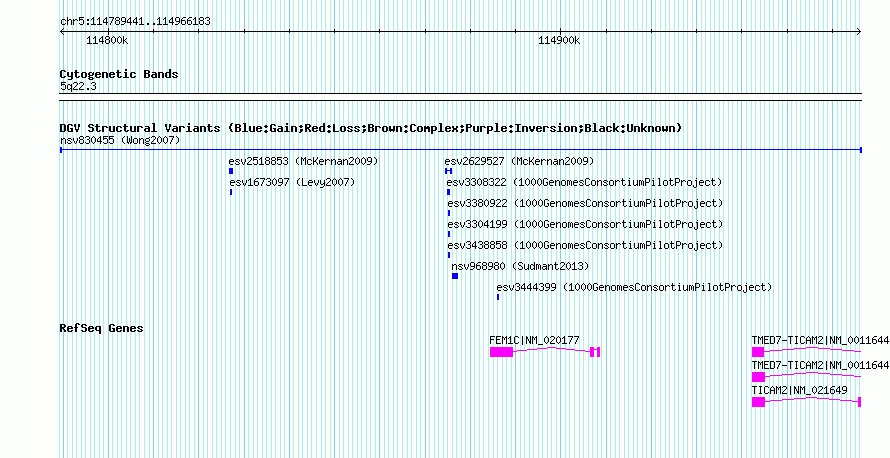 Variant DetailsVariant: nsv830455 | Internal ID | 16107638 | | Landmark | | | Location Information | | | Cytoband | 5q22.3 | | Allele length | | Assembly | Allele length | | hg38 | 176743 | | hg19 | 176743 | | hg18 | 176743 | | hg17 | 176743 |