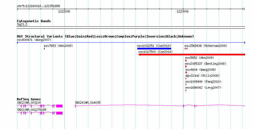 Variant DetailsVariant: nsv830471 | Internal ID | 16454340 | | Landmark | | | Location Information | | | Cytoband | 5q23.2 | | Allele length | | Assembly | Allele length | | hg38 | 191881 | | hg19 | 191881 | | hg18 | 191881 | | hg17 | 191881 |