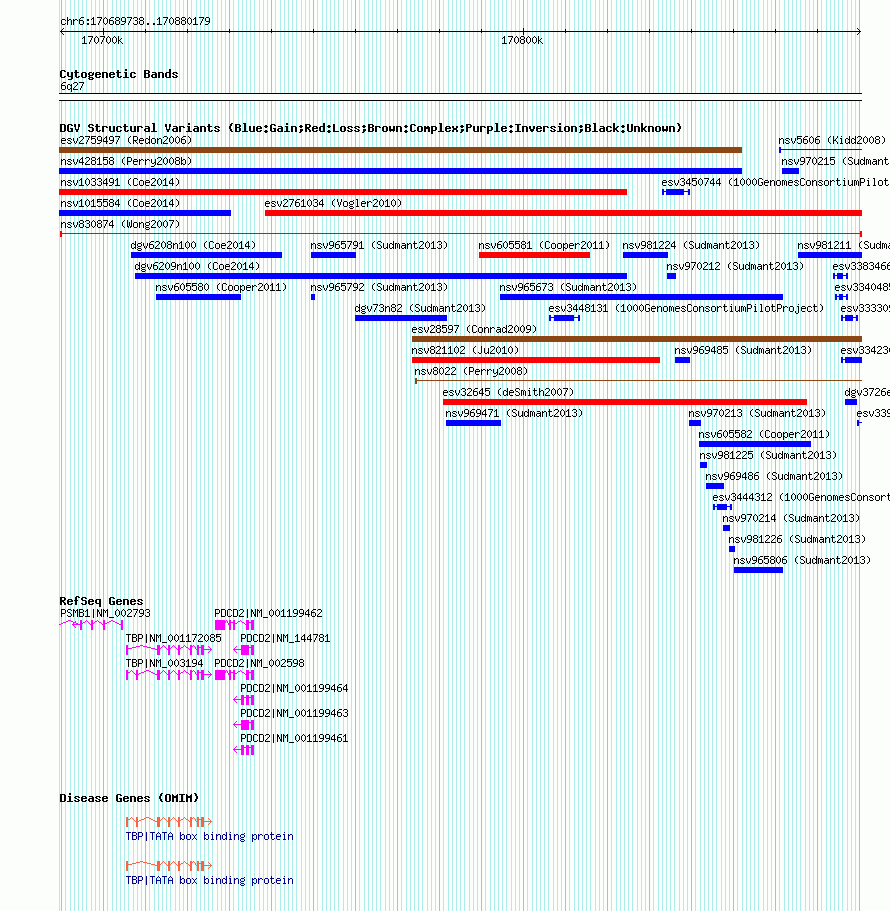 Variant DetailsVariant: nsv830874 | Internal ID | 16454743 | | Landmark | | | Location Information | | | Cytoband | 6q27 | | Allele length | | Assembly | Allele length | | hg38 | 190442 | | hg19 | 190442 | | hg18 | 190442 | | hg17 | 190442 |