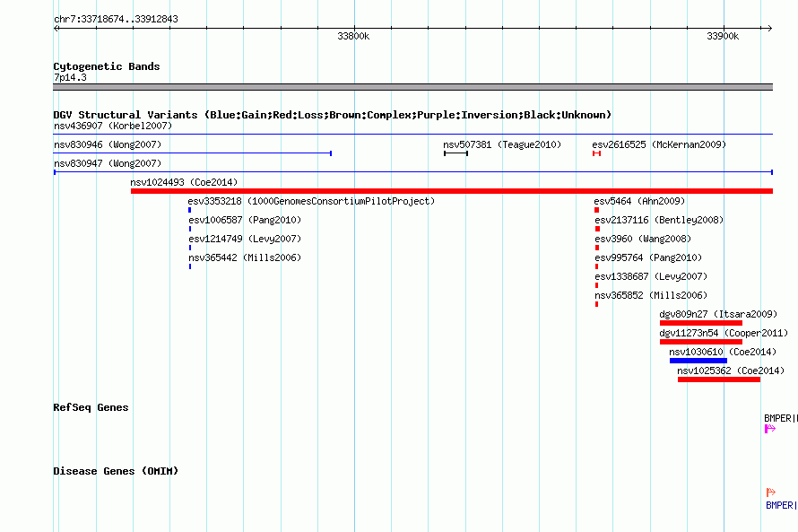 Outerchr7:33525389..33719558hg17UCSC Ensembl