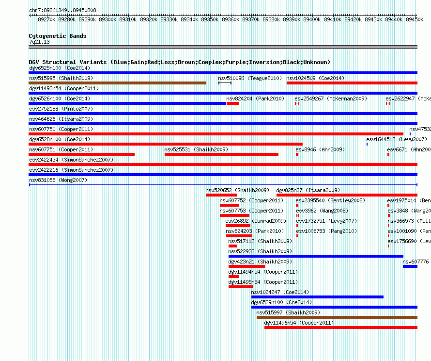 Variant DetailsVariant: nsv831058 | Internal ID | 16454927 | | Landmark | | | Location Information | | | Cytoband | 7q21.13 | | Allele length | | Assembly | Allele length | | hg38 | 189460 | | hg19 | 189460 | | hg18 | 189460 | | hg17 | 189460 |