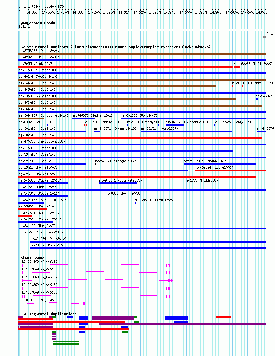 Variant DetailsVariant: nsv831492 Internal ID | 16108675 | Landmark | | Location Information | | Cytoband | 1q21.1 | Allele length | Assembly | Allele length | hg38 | 159017 | hg19 | 161407 | hg18 | 161407 | hg17 | 161407 |