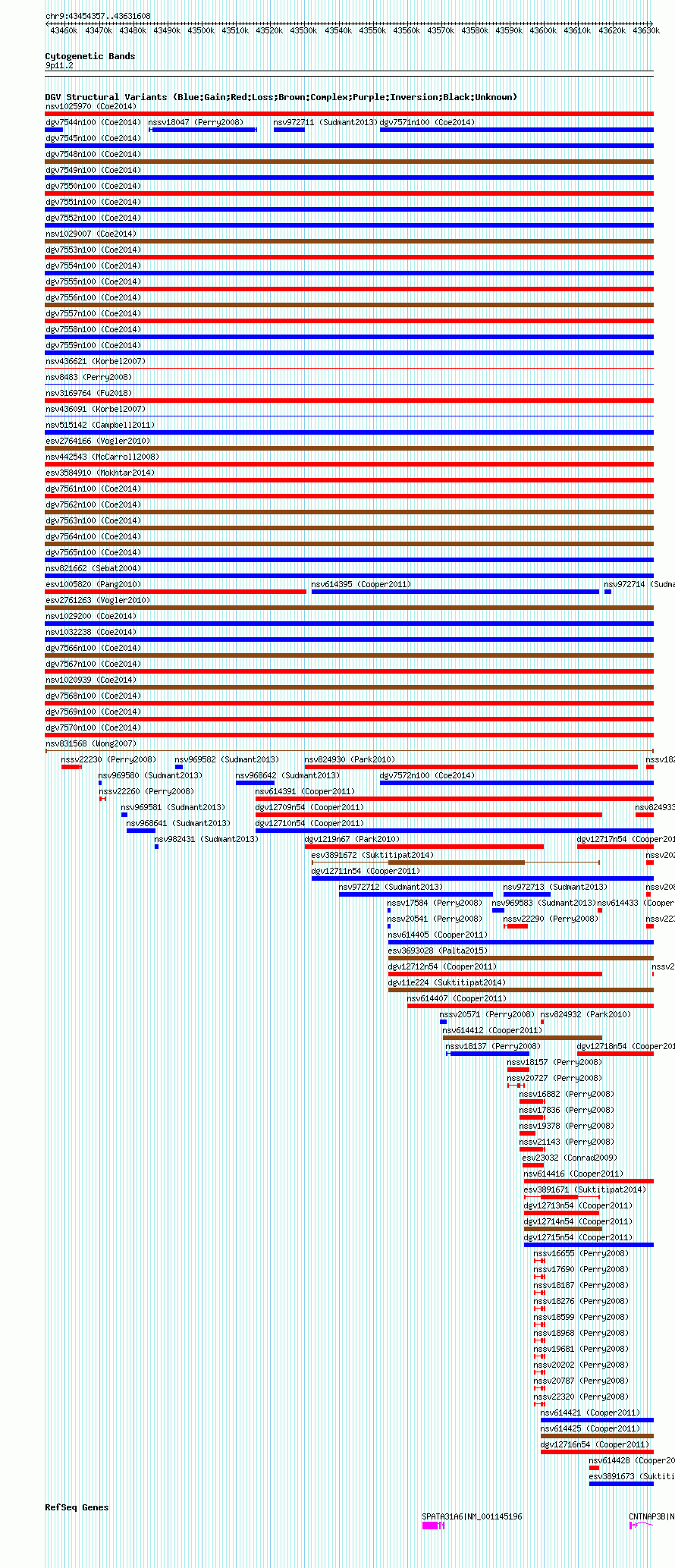 Variant DetailsVariant: nsv831568 | Internal ID | 16455437 | | Landmark | | | Location Information | | | Cytoband | 9p11.2 | | Allele length | | Assembly | Allele length | | hg38 | 177252 | | hg19 | 177252 | | hg18 | 177252 | | hg17 | 177252 |