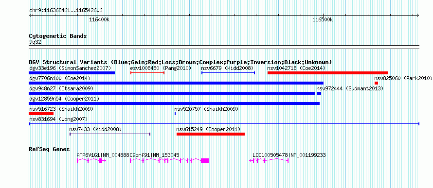 Variant DetailsVariant: nsv831694 | Internal ID | 16455563 | | Landmark | | | Location Information | | | Cytoband | 9q32 | | Allele length | | Assembly | Allele length | | hg38 | 174146 | | hg19 | 174146 | | hg18 | 174146 | | hg17 | 174146 |