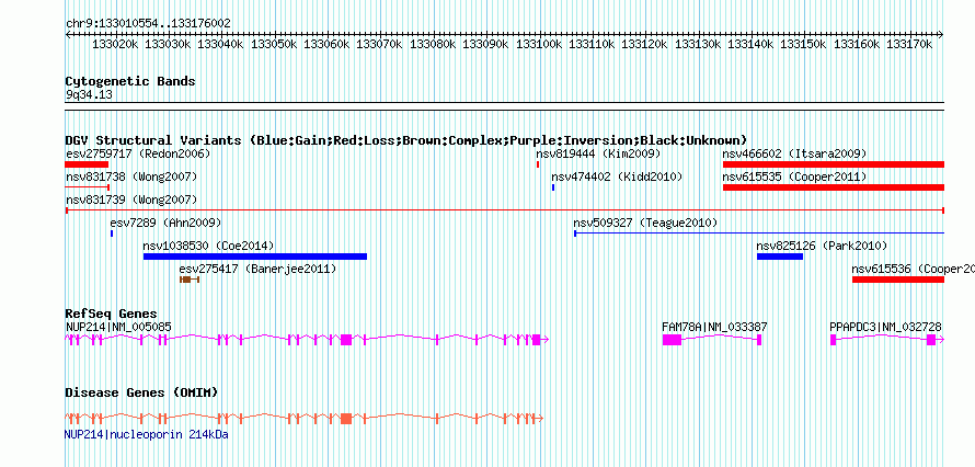 Variant DetailsVariant: nsv831739 | Internal ID | 16455608 | | Landmark | | | Location Information | | | Cytoband | 9q34.13 | | Allele length | | Assembly | Allele length | | hg38 | 165449 | | hg19 | 165449 | | hg18 | 165449 | | hg17 | 165449 |