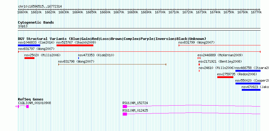 Variant DetailsVariant: nsv831797 Internal ID | 16108980 | Landmark | | Location Information | | Cytoband | 10p13 | Allele length | Assembly | Allele length | hg38 | 175800 | hg19 | 175800 | hg18 | 175800 | hg17 | 175800 |