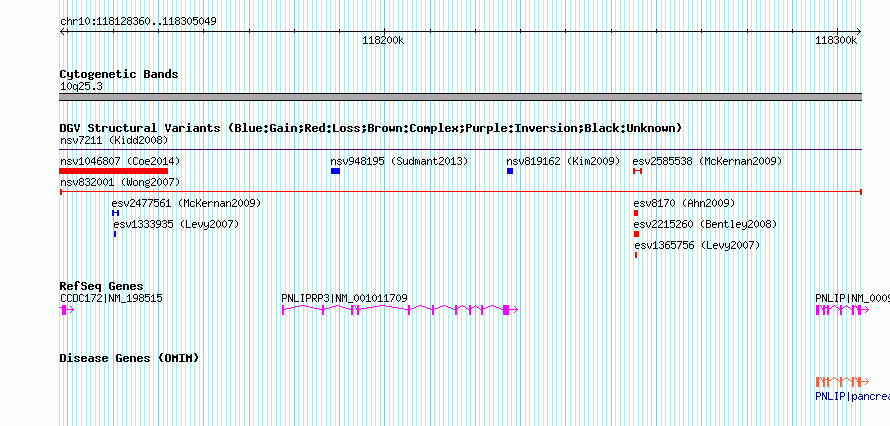 Variant DetailsVariant: nsv832001 | Internal ID | 16455870 | | Landmark | | | Location Information | | | Cytoband | 10q25.3 | | Allele length | | Assembly | Allele length | | hg38 | 176690 | | hg19 | 176690 | | hg18 | 176690 | | hg17 | 176690 |